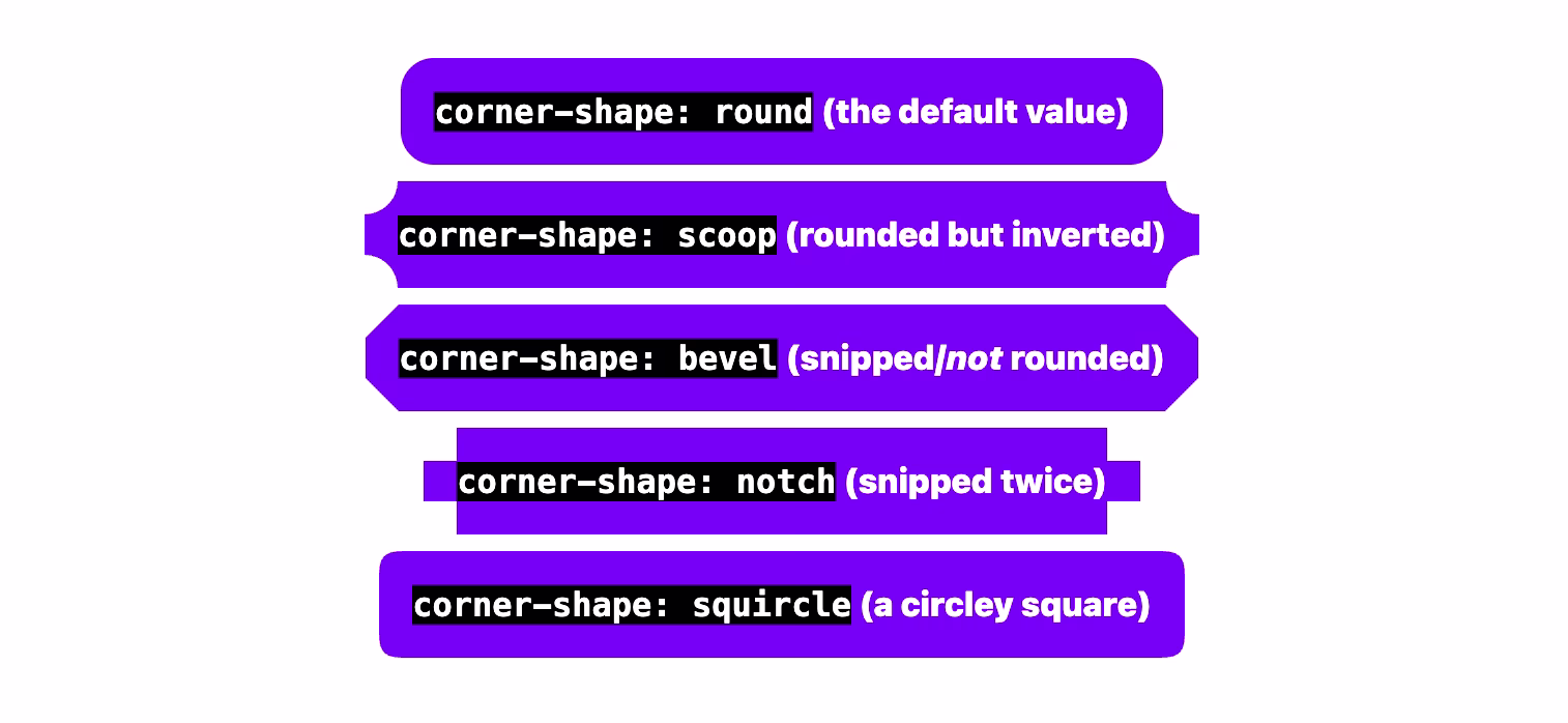 Weâre much less excited about rounded corners nowadays. In fact, sharp corners have made a comeback and are just as popular now, as are squircles (square-ish circles or circle-y squares, take your pick), which is exactly what the corner-shape CSS property enables us to create (in addition to many other cool UI effects that Iâll be walking you through today).