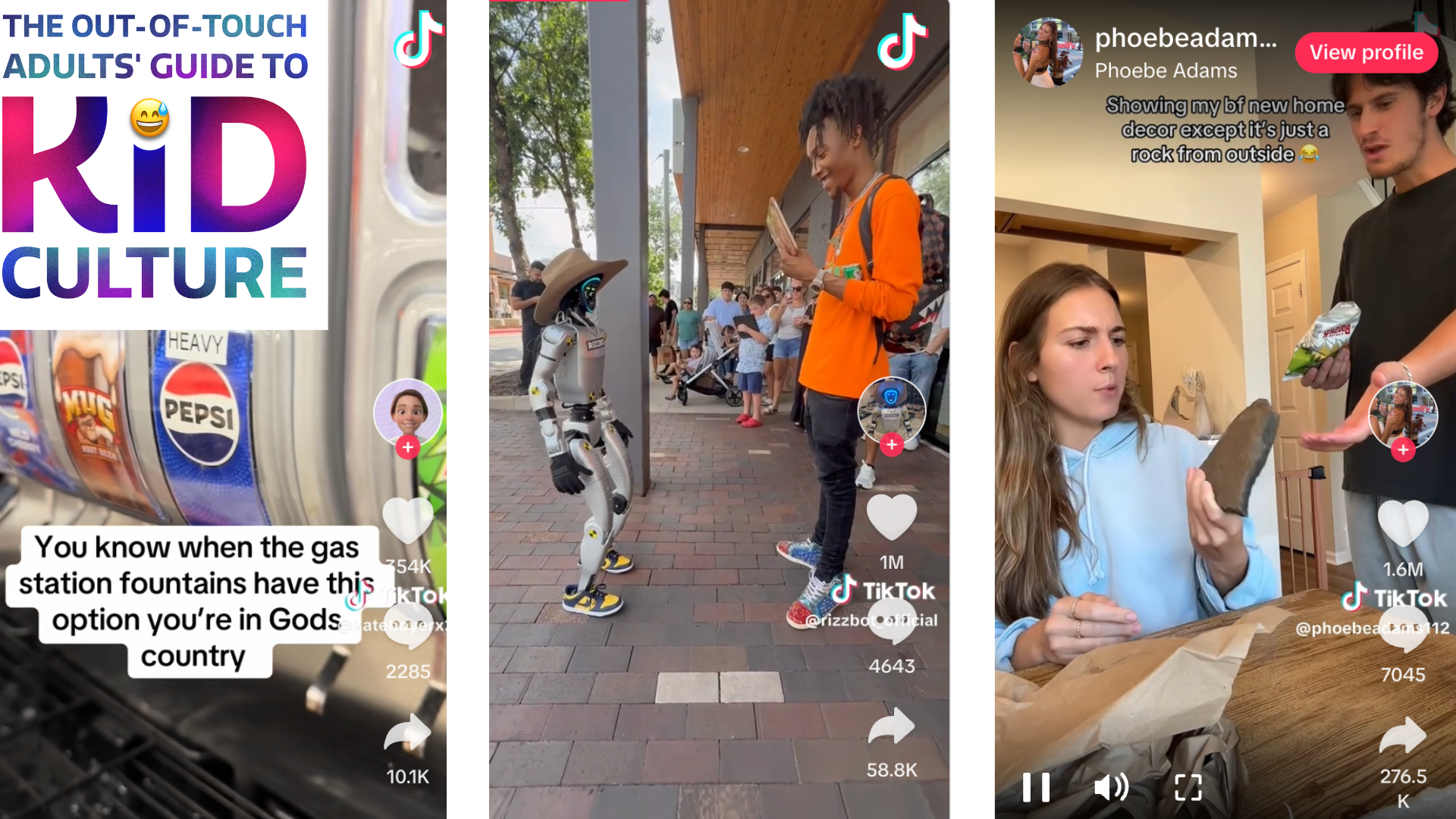 Are you old enough to remember talking to your friends on the phone all the time? A phone with a cord? Then welcome to the Out of Touch Adults’ Guide to Kid Culture, a guide to what’s going down with all the youths out there. This week, the young ‘uns are stealing each other’s brainrots, guzzling heavy soda, (not) paying $500 for a rock, and being harassed by a rizzed-out robot.