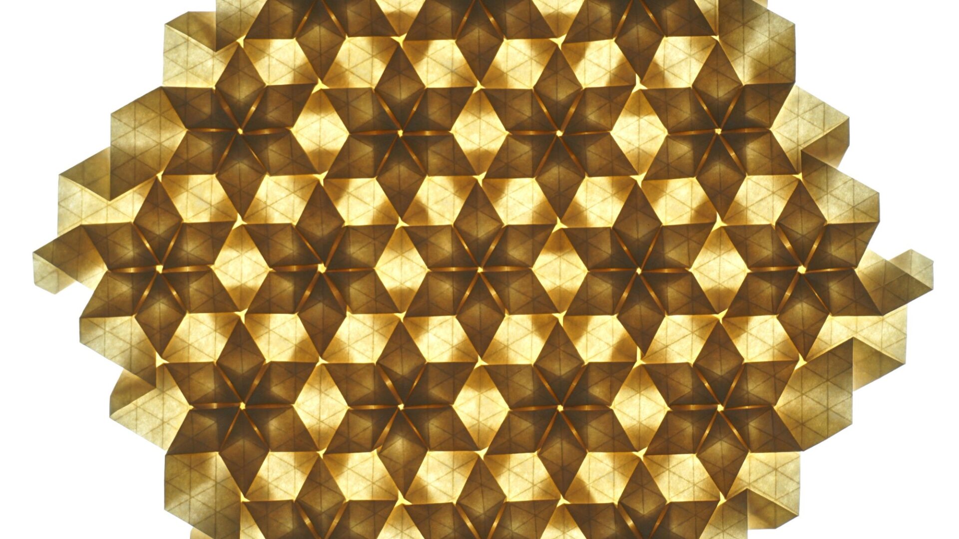 But she didn’t truly embrace tessellations until after she graduated and was preparing for a four-and-a-half-month MIT-sponsored internship in Israel. “These modulars have a lot of volume—I’m not going to bring back a suitcase full of them,” she remembers thinking. And she wasn’t going to leave behind four-plus months of folding work. “So I decided to teach myself to fold tessellations because they’re flat and travel well,” she says. “Then it took root in my brain and never let me go.”