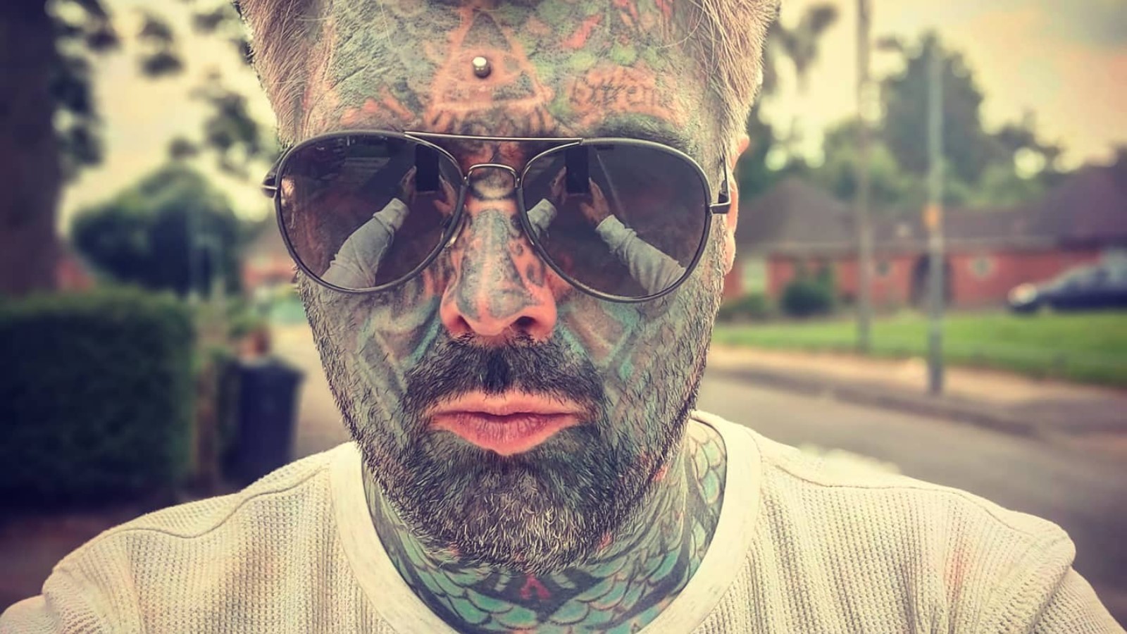 Britain’s most tattooed man says UK’s age check told him to “remove his face”