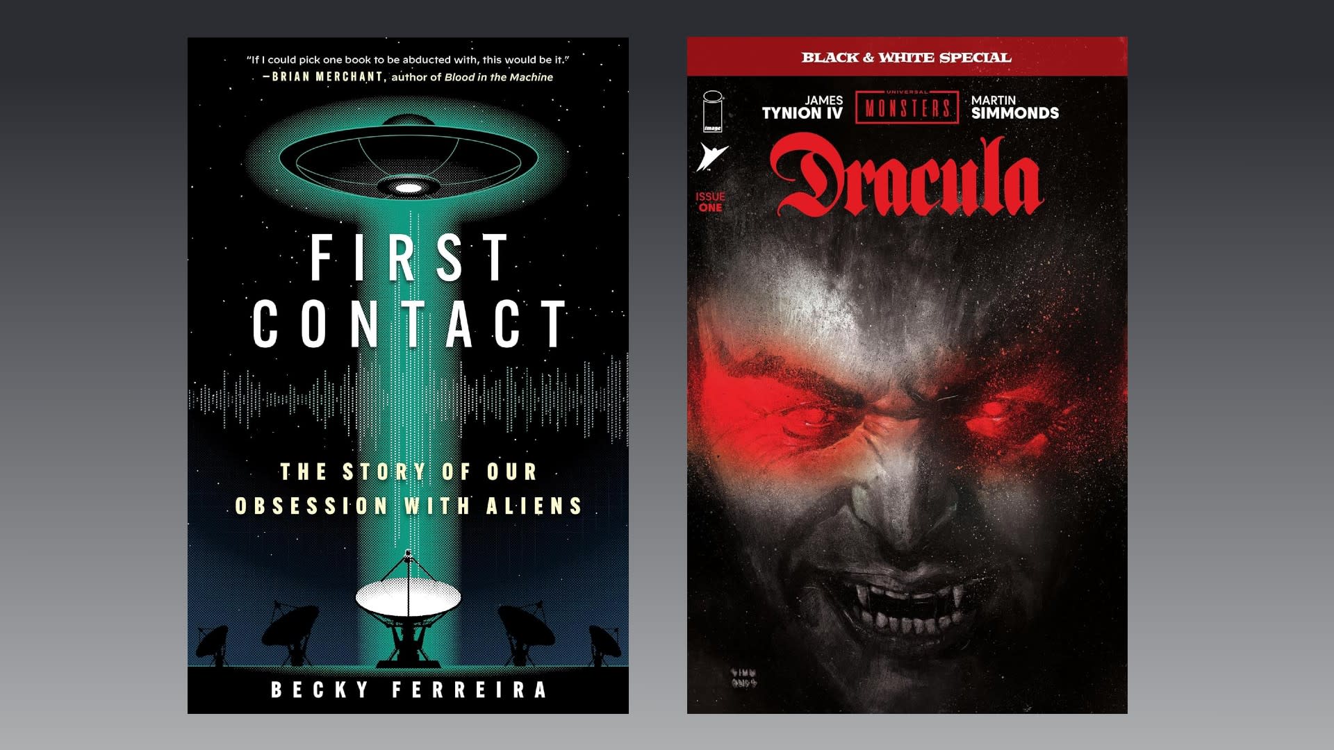 Here are some recently released titles to add to your reading list. This week, we read First Contact: The Story of Our Obsession with Aliens, plus James Tynion IV and Martin Simmonds’ take on Dracula — now in black and white for extra creep-factor.