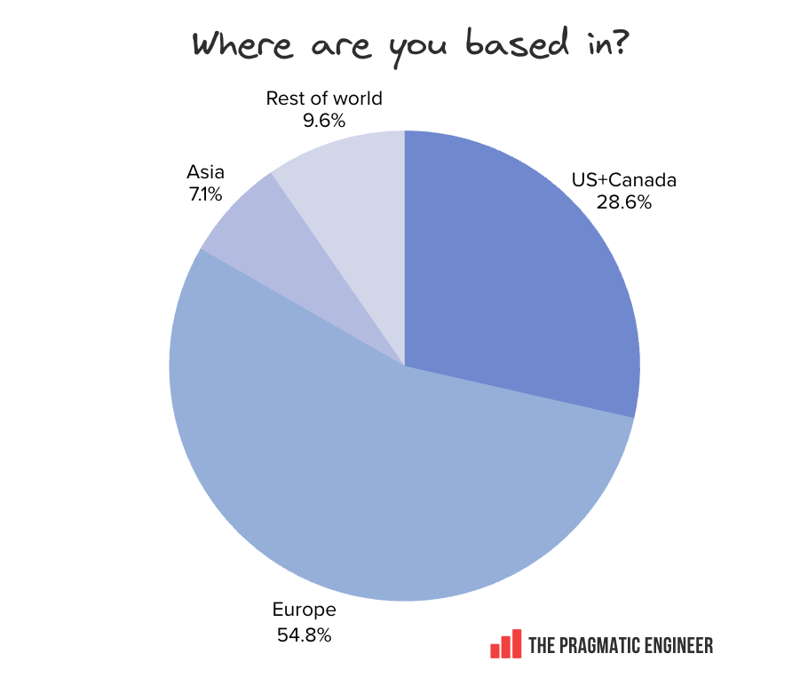 Region-wise, most respondents are in Europe or the US: